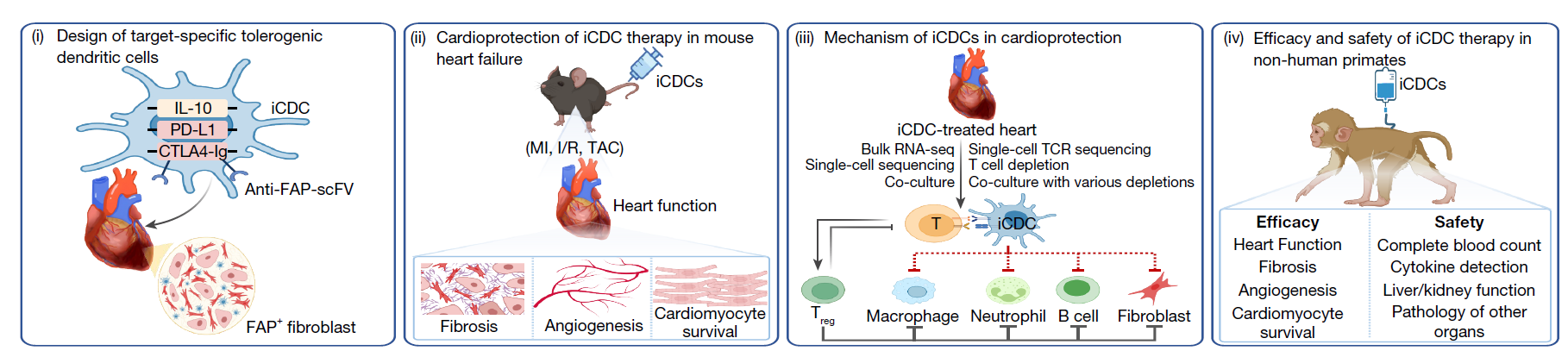 全球首创工程化免疫抑制 + 纤维化靶向树突状细胞(iCDC),实现病灶精准免疫调控,逆转病理性心脏重构、改善心衰,完成从小鼠到非人灵长类的完整验证。跳出传统心衰治疗思路,开辟免疫靶向新赛道,为终末期心衰提供 “逆重构、保功能” 的全新方案。